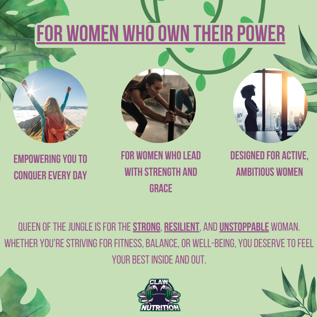 Elevate your mind, body, and beauty with Queen of the Jungle — a clinically-inspired formula combining 15 active ingredients to support hormone balance, glowing skin, strong hair, lean muscle, and unstoppable energy.