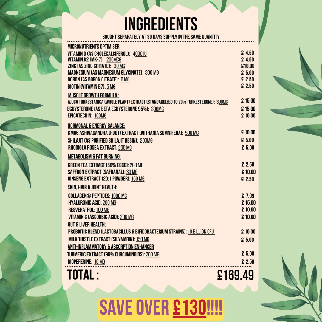 | 💪 Muscle & Strength Ingredients | ✅ Turkesterone, Ecdysterone, Epicatechin | ❌ None |